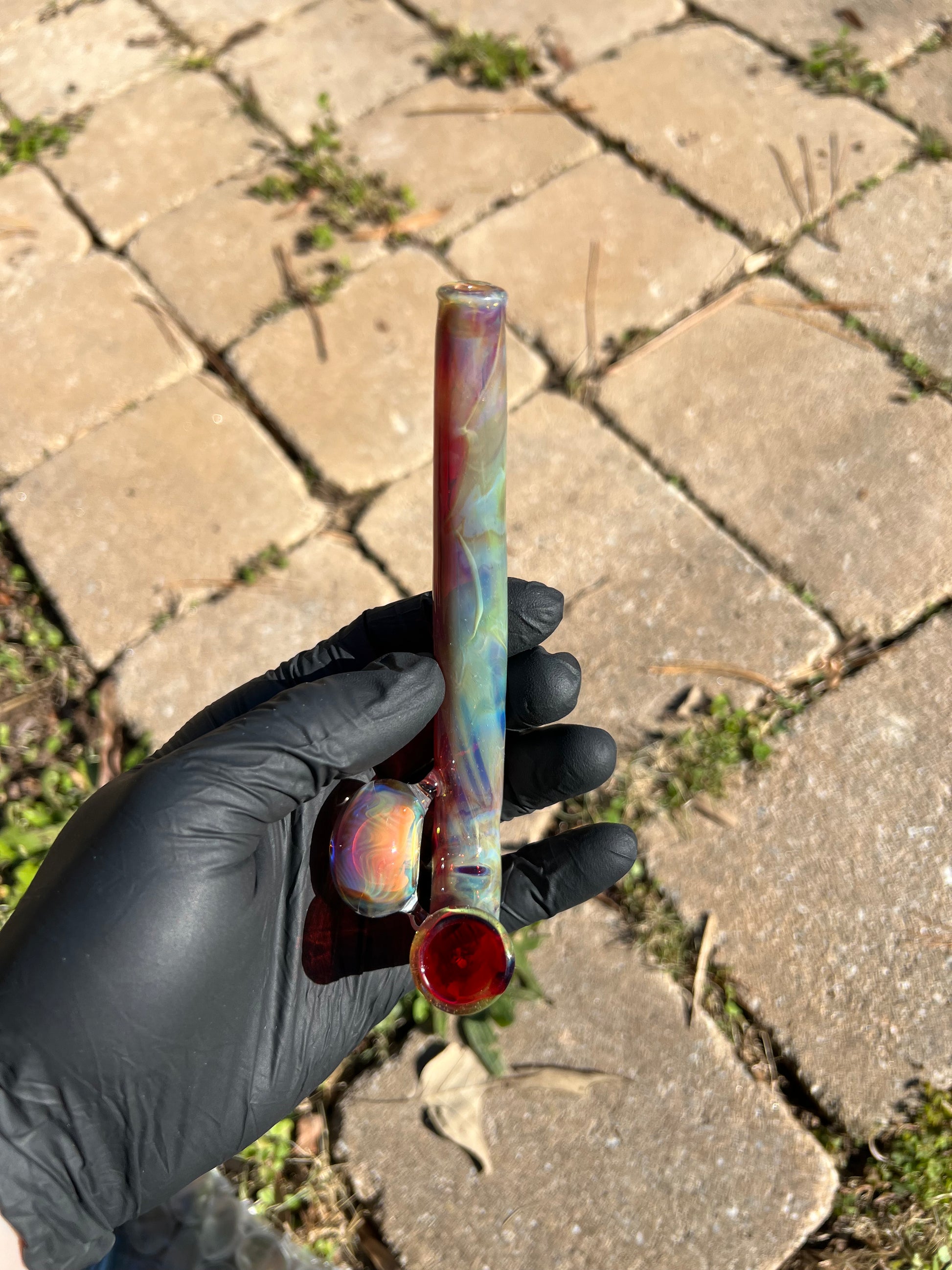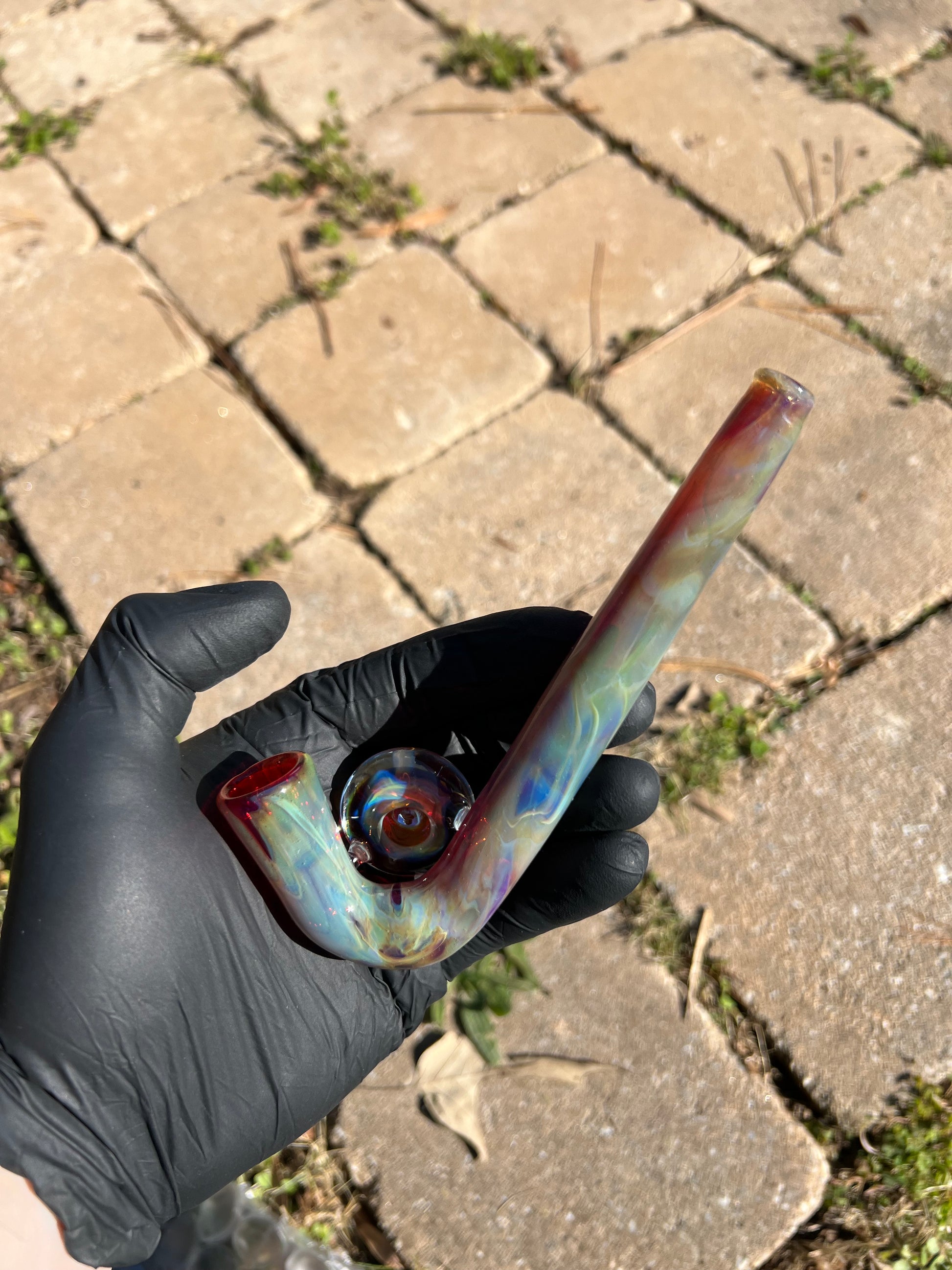 14mm glass jhook style piece with a fume marble attached