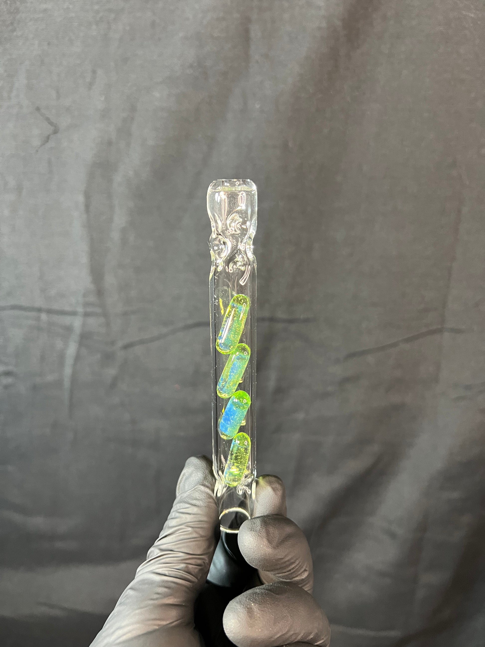 5 inch Tinymight Glass stem with 4 glass terp pills. Stem has a dimpled mouthpiece on top and can not be used with external mouthpieces. stem is designed to use a basket screen.