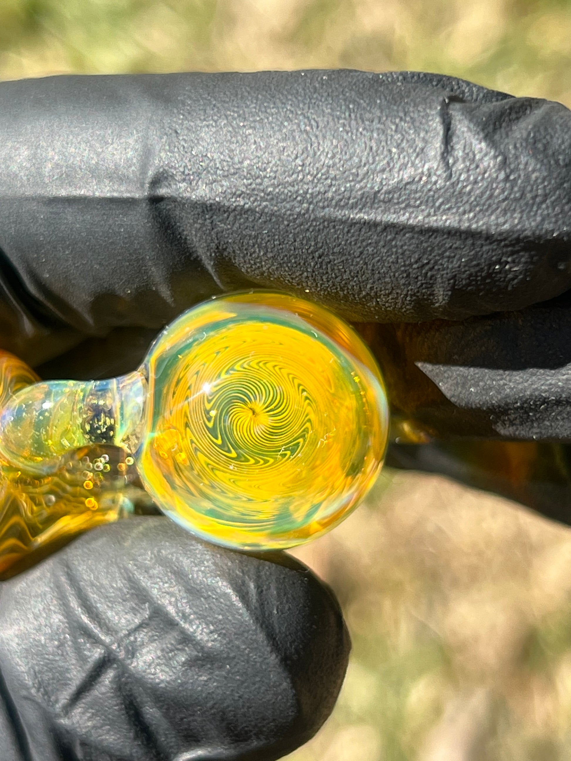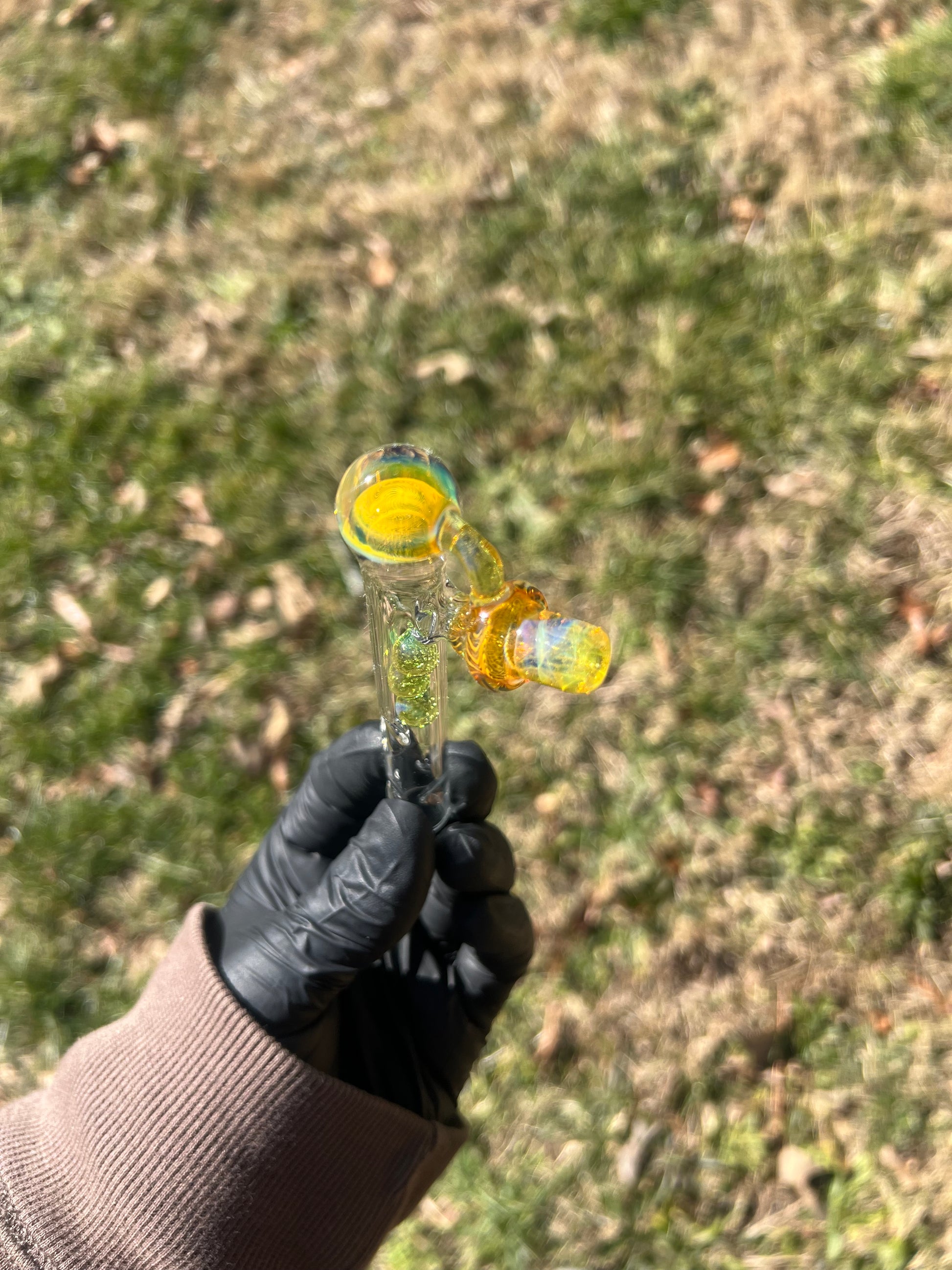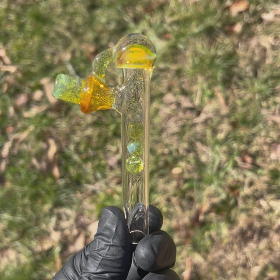 4 inch glass stem designed to fit the Toad. Stems has 3 glass marbles and a hand blown mouthpiece.