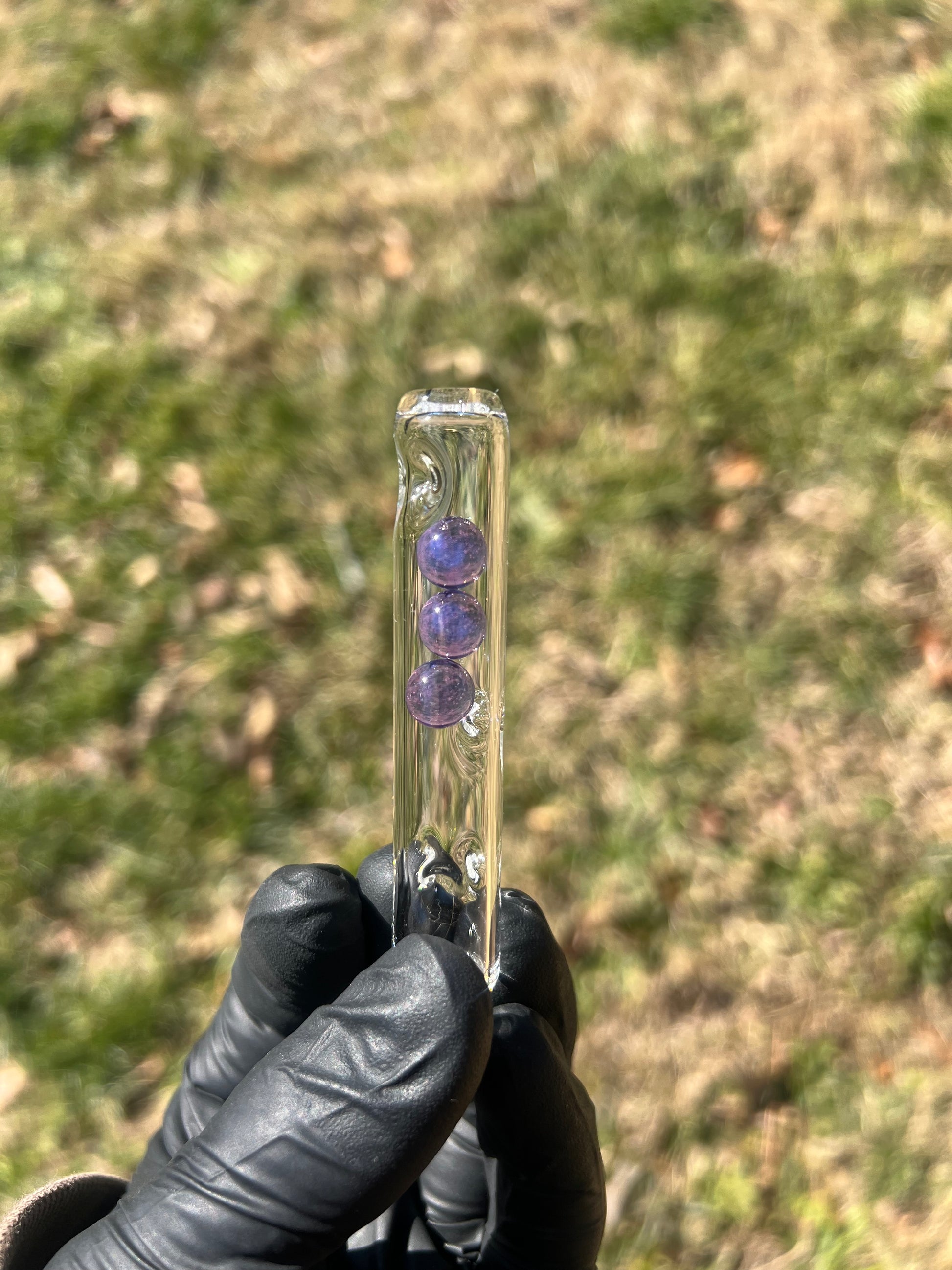 3 inch glass stem designed to fit the Toad. Stems has 3 glass marbles and a hand blown mouthpiece.