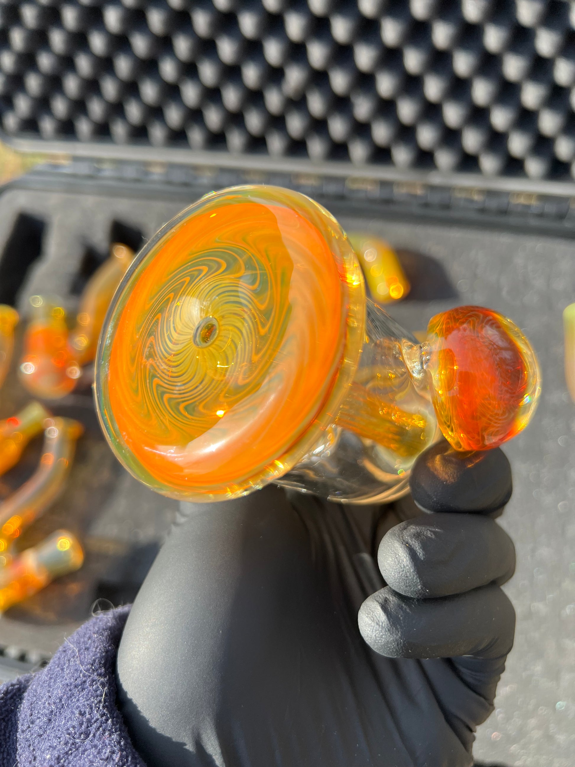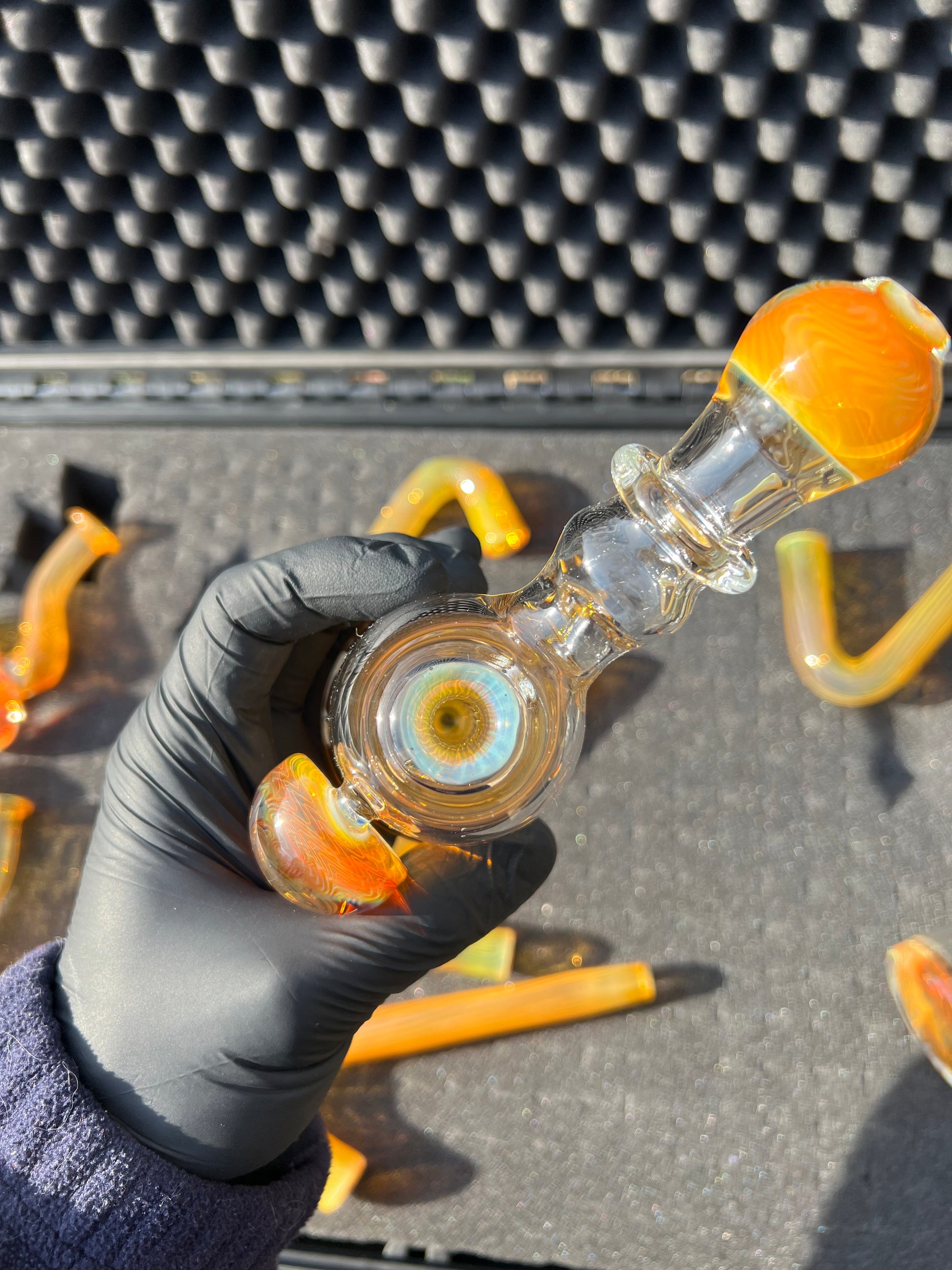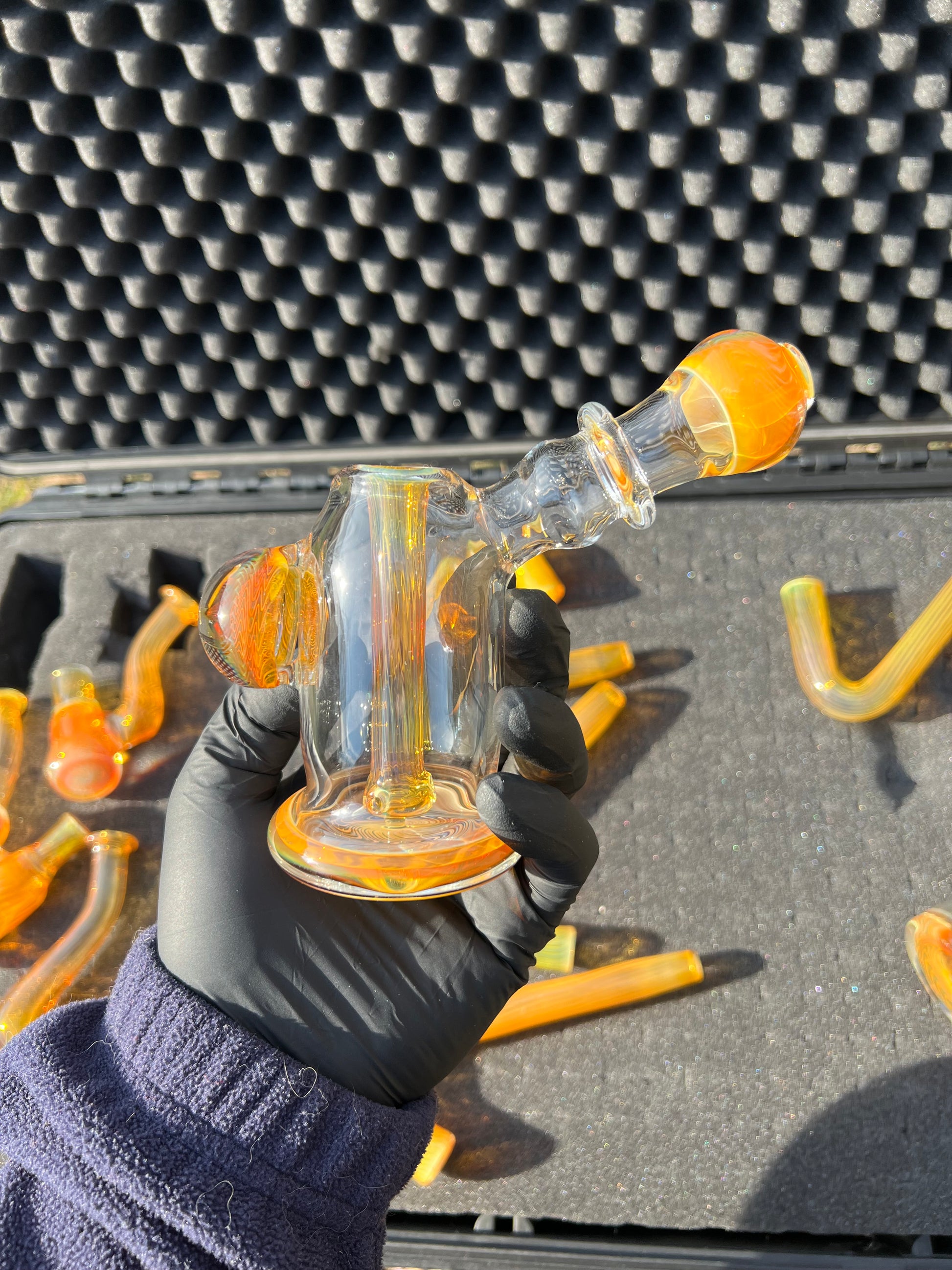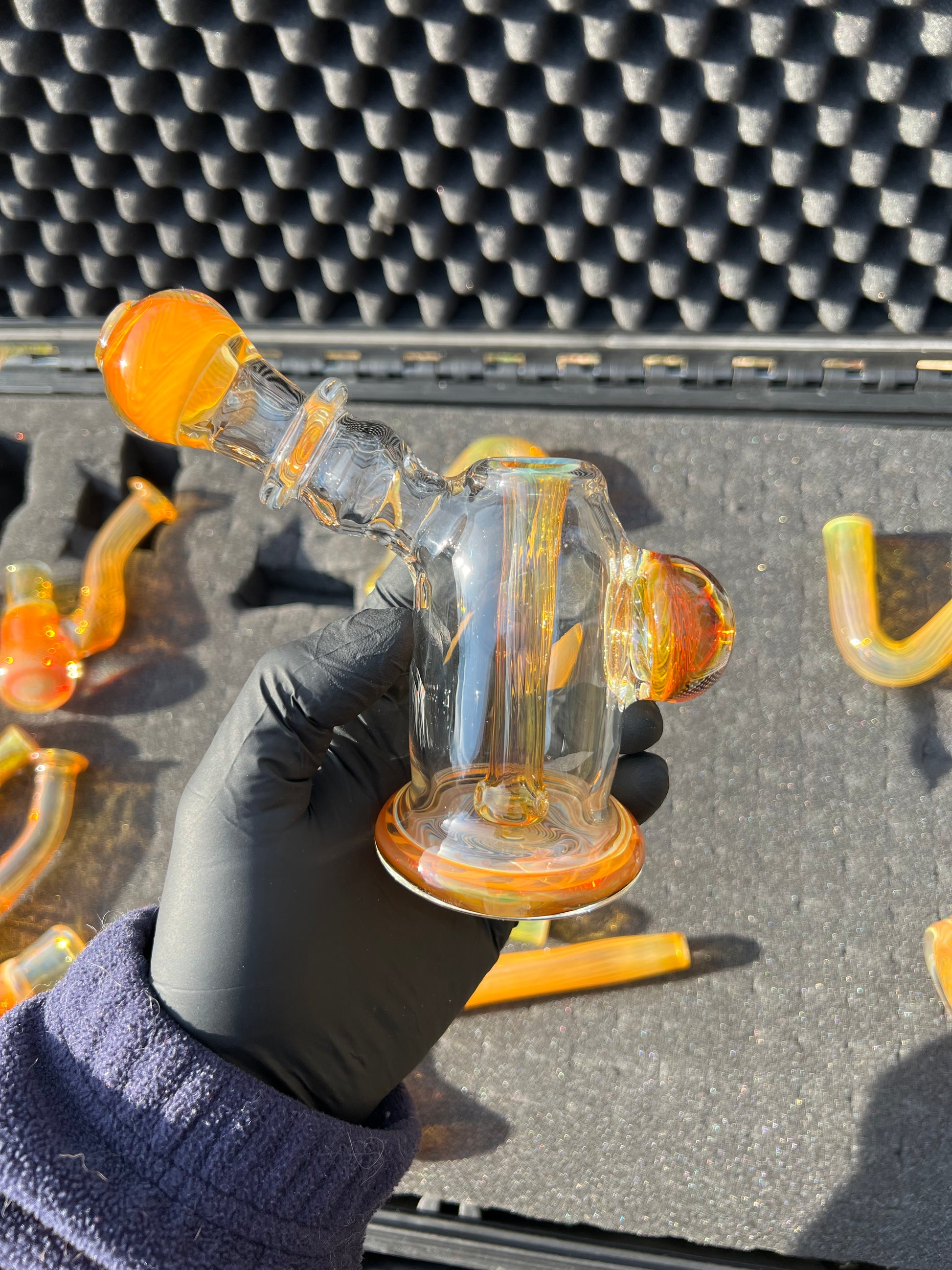 10mm dewar bubbler with silver fume throughout and silver fume marble. This piece has a slight blemish in the clear and is discounted accordingly