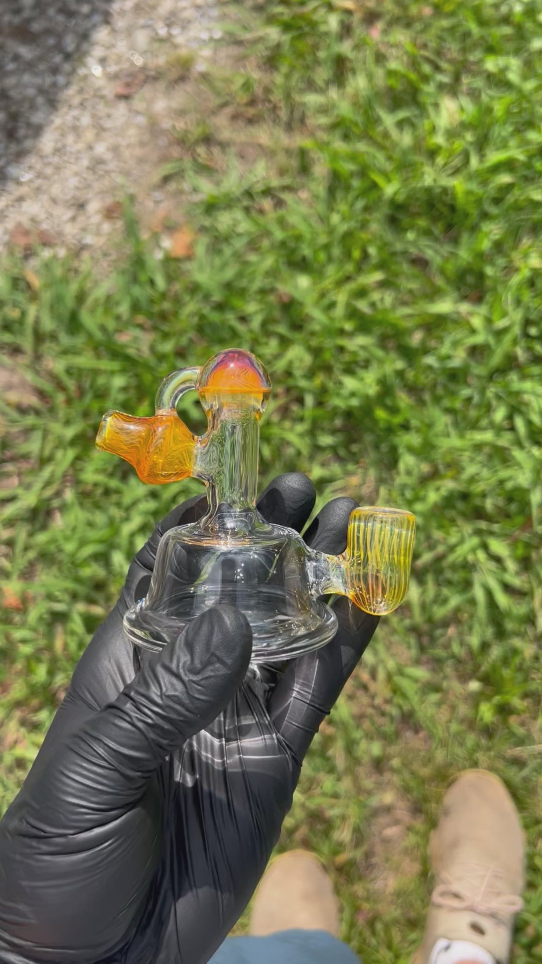 14mm dry rig with silver fume implosion marble on top and silver fume sections.