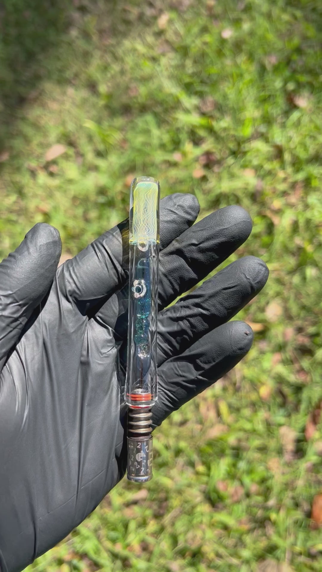 Dynavap glass full Silver Fume stem that is approximately 3.75 inches and has 2 marbles and 1 pill trapped inside for extra cooling properties. Stem has a handmade 8mm fitting to insure a secure fit to all tips. Stem comes with 2 additional o-rings (6x1.1mm) that are 0.1mm larger than the stock oring to accommodate for various tips.