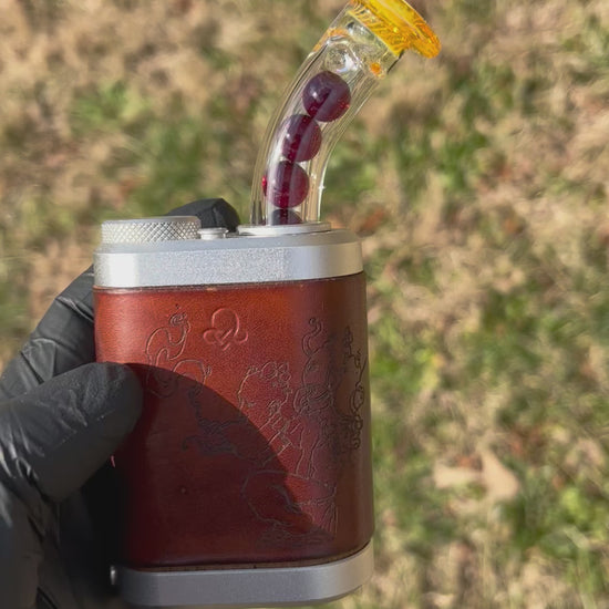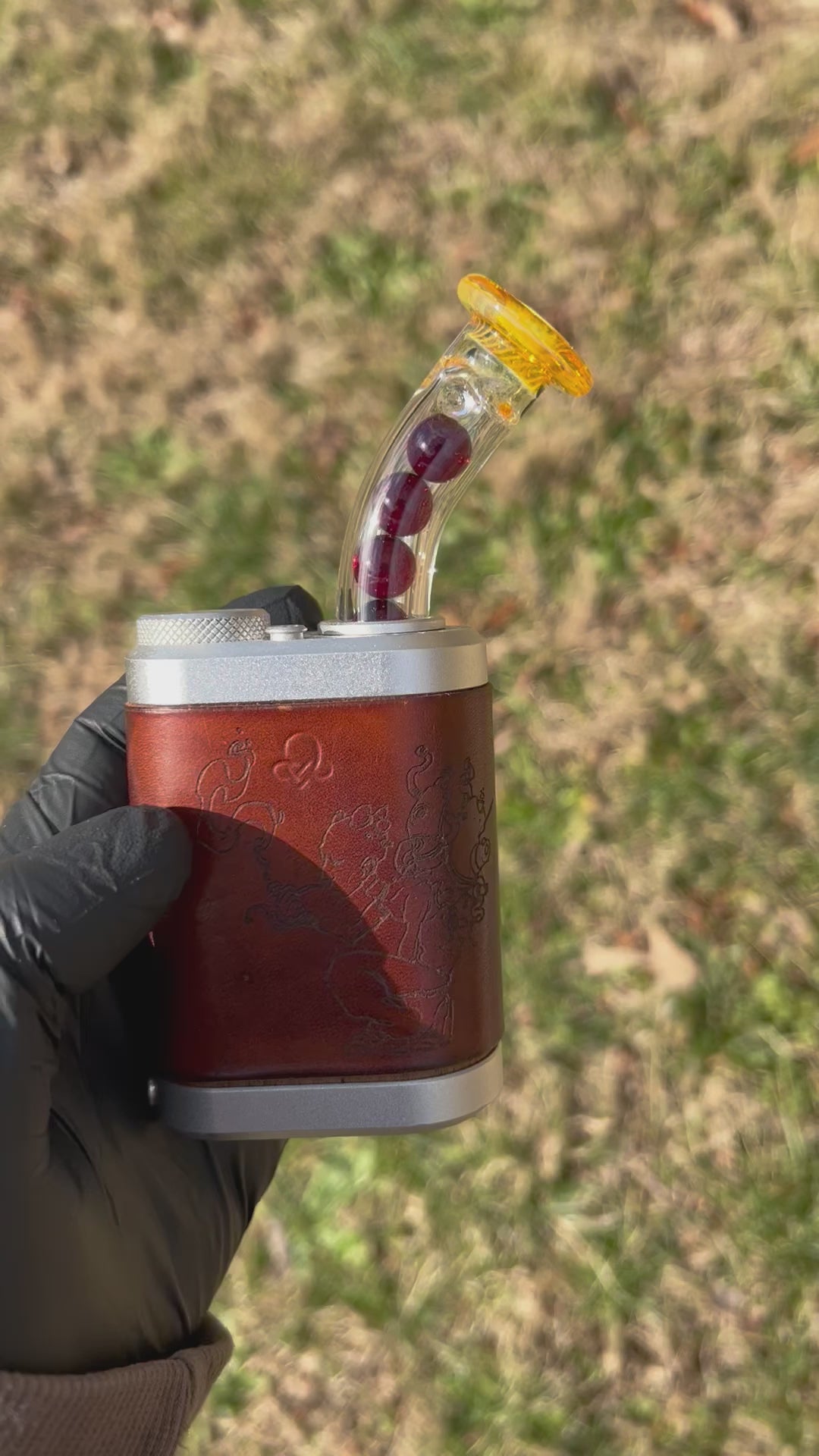 Tinymight Glass stem with 5 marbles. Stem has a blown mouthpiece on top. Stem can not be used with external mouthpieces. stem is designed to use a basket screen.